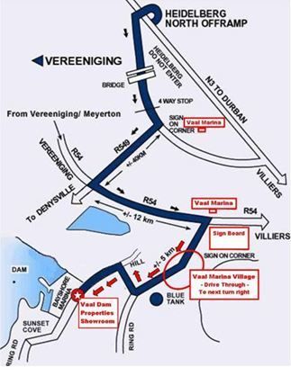- After approximately 34kms you will see a signboard that says Vaal Marina. Turn right. (follow the signs to Vaal Dam Properties or Bayshore Marina).
